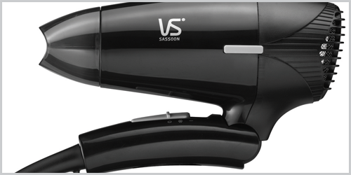 Vidal Sassoon compact design hair dryer with folding handle to easily store and carry. Keep your hair looking fresh and stylish wherever you go with this compact hair dryer.